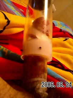 しかし、根元シリンダーを10cmで切断したところから、 ペニスがぐぐっと反り上がって、亀頭シリンダーにくっついてしまった証拠写真です。 つぶれているのがわかりますか?