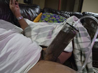 鍛錬を再開してふぐってる所の保護の代わりに百均のアンクルウェイト(250g)巻いてる、ひなせです。